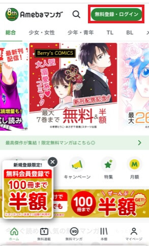 Amebaマンガ100冊40%OFFクーポンは、会員登録するだけでもらうことができます。