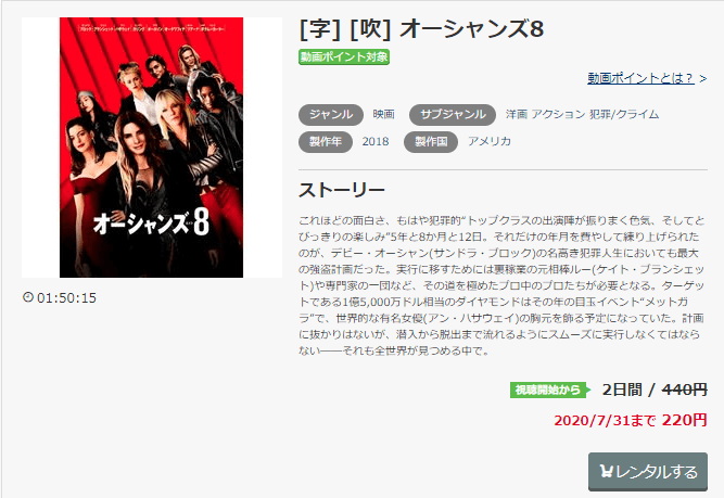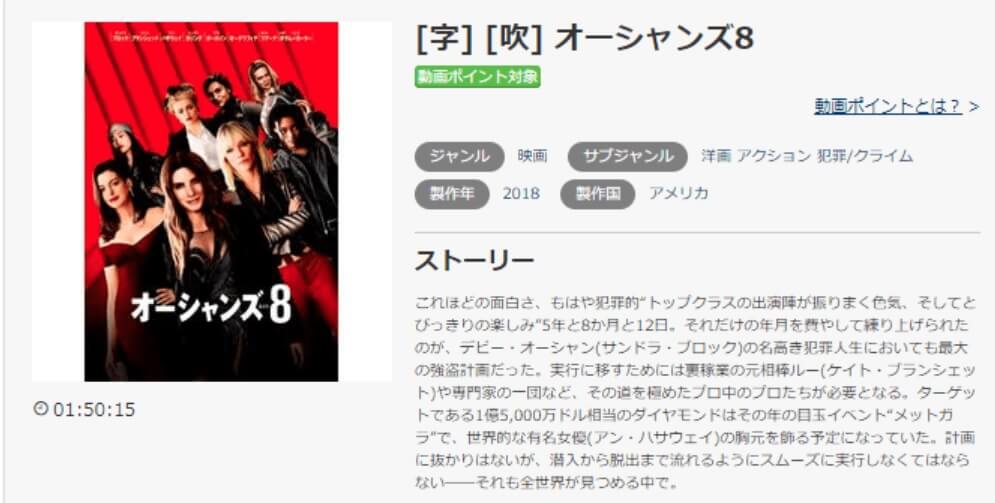 そのポイントを使用すれば、オーシャンズ8を無料で視聴することができます。