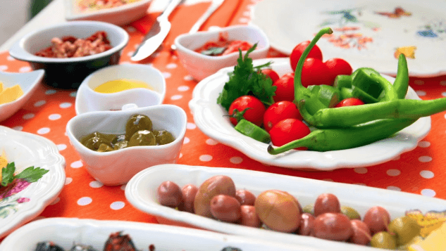 トルコ伝統の朝ご飯は、様々な料理が少しずつ楽しめます。このような朝ご飯はメゼと呼ばれるそうです。意味は「味わい」や「軽い食事」という事でした。